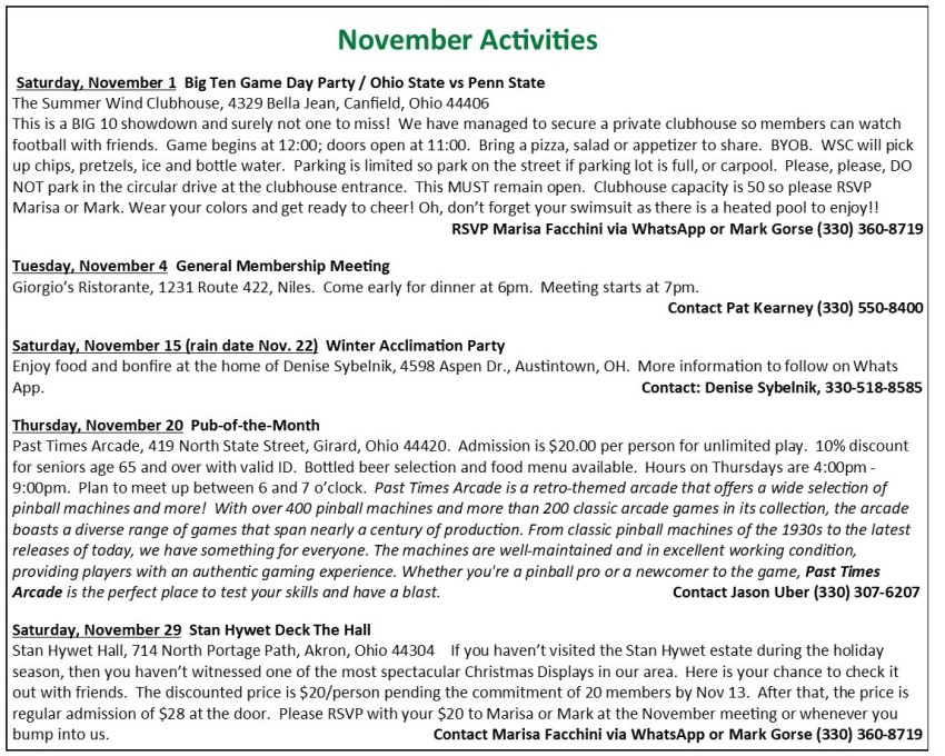 Thanks to the generous donation of tickets from fellow club member, Tom Uher of Champion Insurance of Austintown, WSC members have been able to attend several YSU Football and Basketball Games. Many of our members enjoy this opportunity to cheer on our local teams.