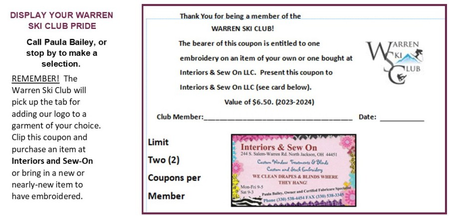 To be used by any member or officer of the Warren Ski Club requesting a check from the Treasurer.