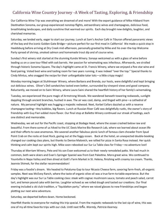 Fall 2024 saw the club take 54 people on a wine and exploration trip to West Virginia. First stop was to the Hatfield Family Distillery and Sweeter Side of the Feud Winery, where we learned about the famous feud from Mark Hatfield, a direct descendent. Next, we toured the Beckley Exhibition Coal Mine, then made our final stop at Daniel Vinyards and its beautiful 192-acre property.