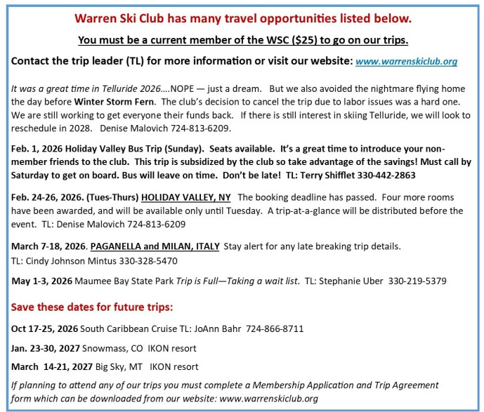 The club held the first one-day bus trip offered in many years on Sunday February 1. Twenty-six members braved the cold to attend what turned out to be a great day on the slopes. We were surprised by low weekend crowds -- likely due to the forcasted cold weather. However, the sun came out by mid-morning and the clear blue skies (and multiple clothing layers) kept us comfortable throughout the day.